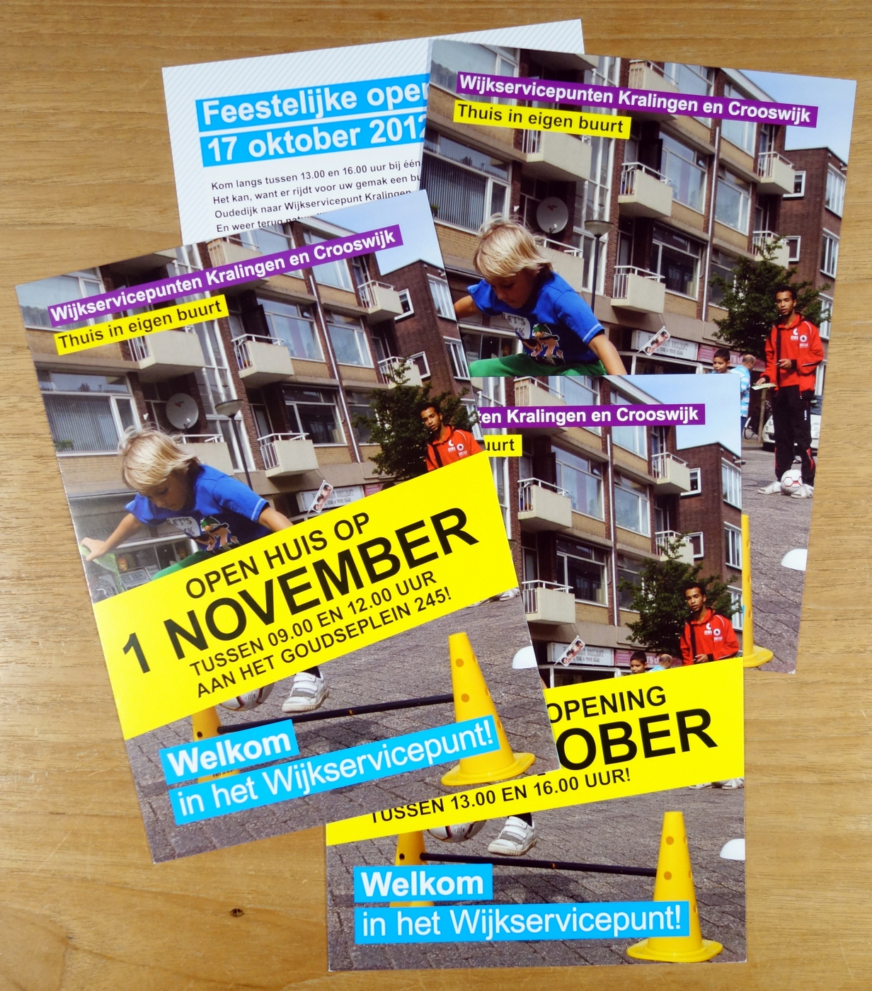 Voor de Deelgemeente Kralingen-Crooswijk heb ik de introductie van Wijkservicecentra begeleid door het organiseren van twee open huizen en de communicatie hieromheen. Via persberichten werd hier aandacht voor gegenereerd, waardoor de open huizen goed bezocht zijn. Een flyer ondersteunde de communicatie.